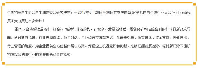 【邀請函】由江蘇湯姆集團贊助的第九屆再生油行業大會即將開始!