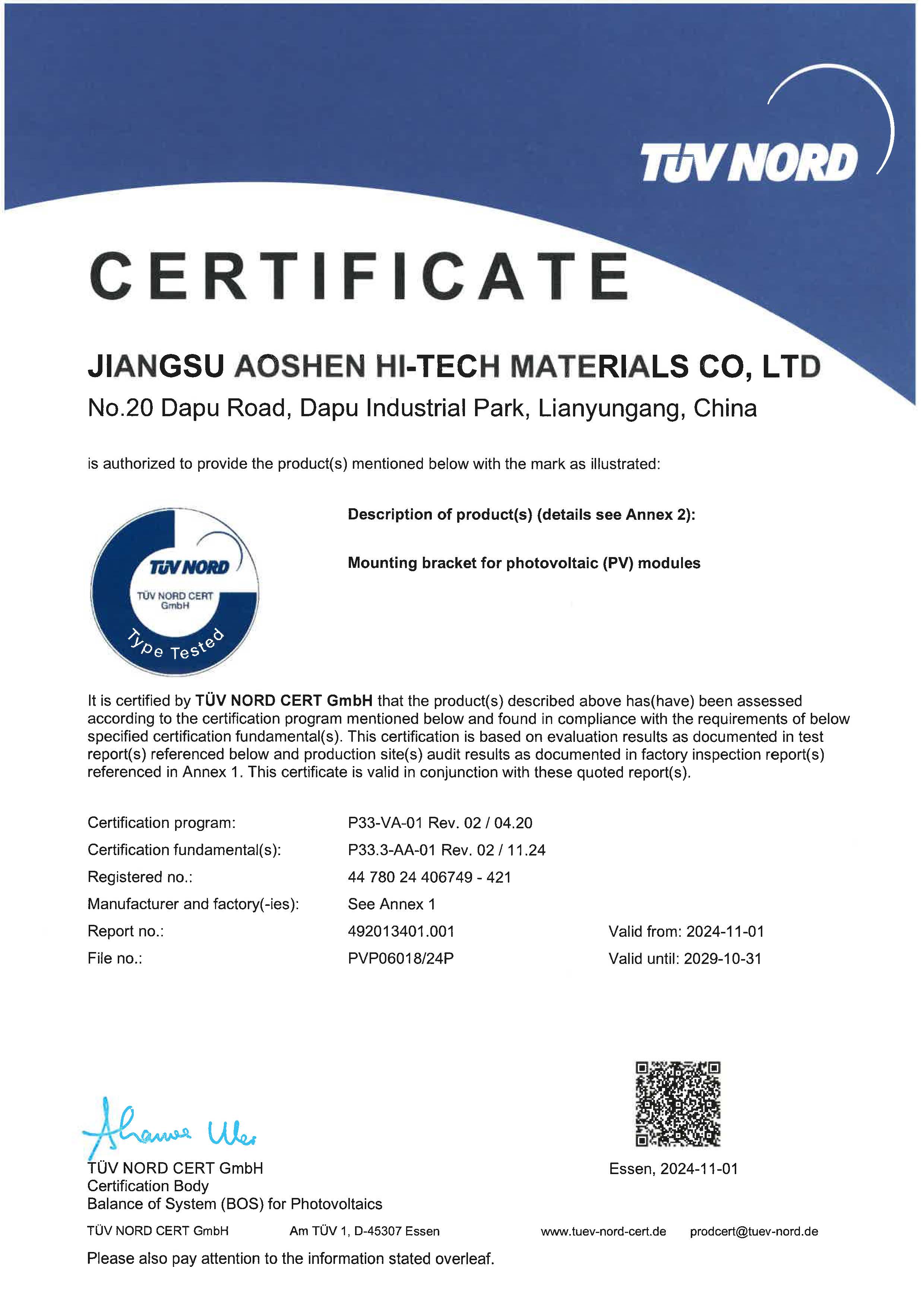 北德TÜV技術規(guī)范認證證書