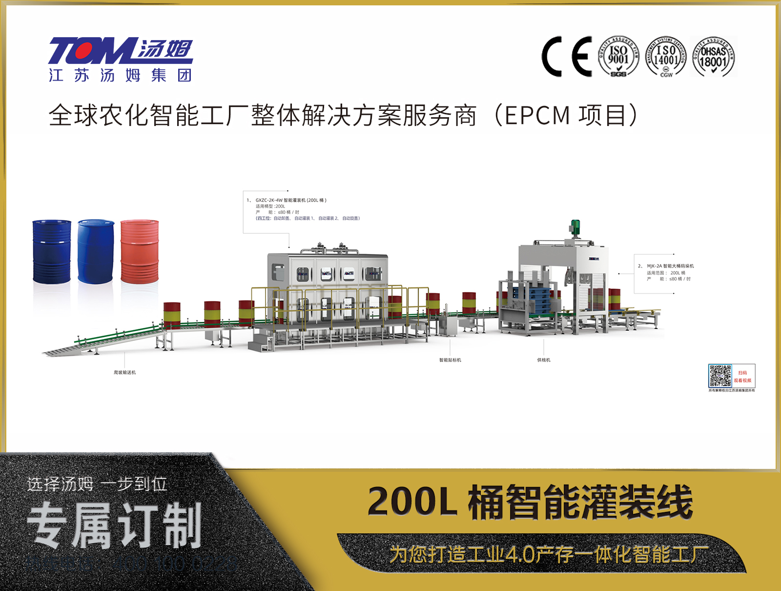 200L桶/IBC噸桶復(fù)合灌裝線(自動(dòng)換槍頭:6把)