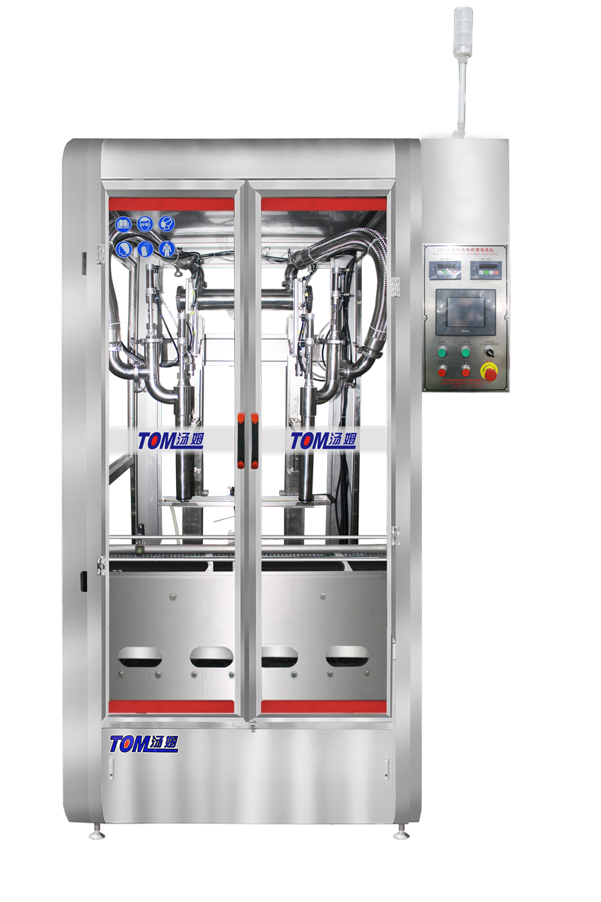 該機是針對1kg以上,8kg以下液體的灌裝而設計的雙頭灌裝機,下料頭可深入桶底灌裝,可有效減少泡沫的產生,具有結構簡潔,定量精度高,產量大等優點。